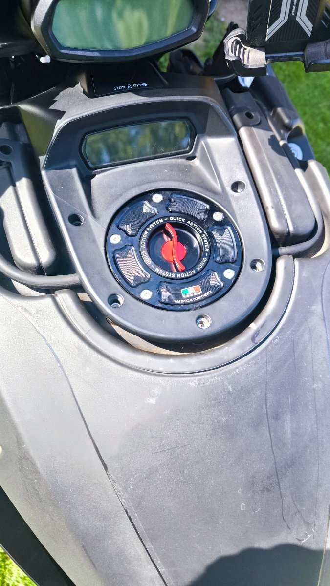 bongobongo73 Posted May 18, 2025 Posted May 18, 2025 Der Einbau des Tank Schnellverschlusses gestaltete sich doch als etwas aufwändiger wie vermutet. Man muss tatsächlich um den originalen Tankdeckel auszubauen die komplette Verkleidung lösen. 1. Seitliche Lufthutzen runter 2. Seitliche Bleche lösen 3. Verkleidung Tacho auf Tank lösen 4. Tankhaube abnehmen 5. Sitzbank runter (um die letzte Schraube der Tankhaube zu entfernen) Dann hat man Platz die Verkleidung vom Tacho zur Seite zu nehmen um die Schrauben des Tankverschlusses am Tanks zu lösen. Danach alles wieder in umgekehrter Version zusammenschrauben. Viel Erfolg - (P.S. hab ordentlich geflucht beim Einbau) Tankdeckel von TWM - quick action RoRaiseR 1 Quote