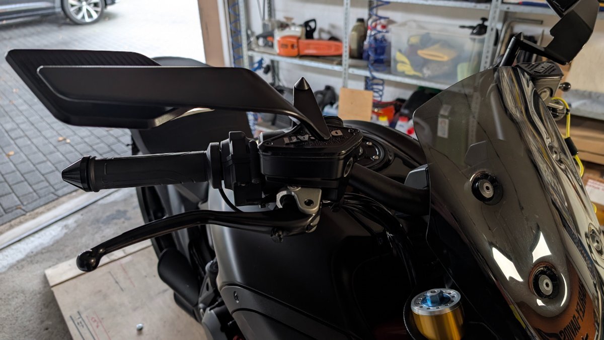 Mütherich Posted October 1 Posted October 1 Moin. Ich würde gerne bei meiner Diavel 1260 S Baujahr 2019 die Ausgleichsbehälter der Bremspumpe und Kupplungspumpe versetzten und so kleine Runde Ausgleichsbehälter aus Alu oder Carbon von Ducati oder Rizoma nehmen um die Rizoma Stealth Max Spiegel tiefer zu bekommen. Jetzt ist nur die Frage, ob das mit den Originalen Brembo Pumpen funktioniert. Anbei ein paar Fotos, da siehst du schon die Problematik. Ggf hat das schon mal jemand gemacht und kann mir sagen, was ich dafür benötige. Gruß aus Bielefeld! Säsch Quote
