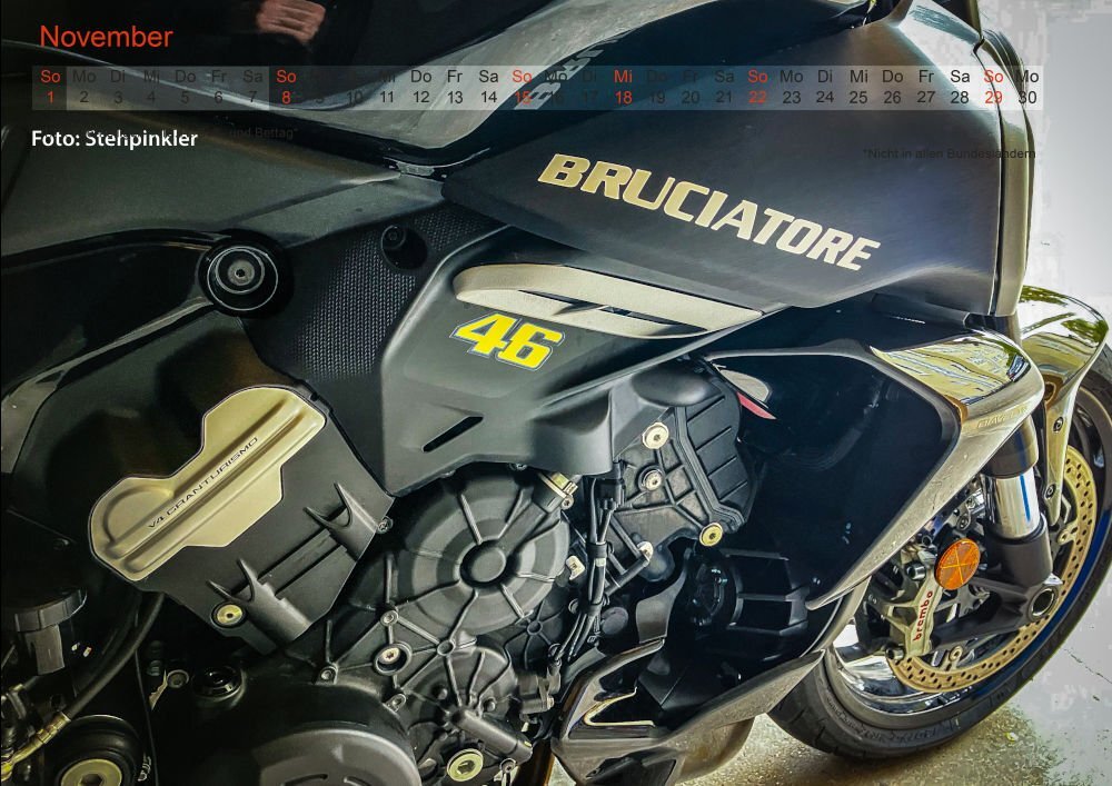 Guenter Posted 4 hours ago Posted 4 hours ago Liebe Diavelgemeinde, er ist gerade fertig geworden! Unser Jahreskalender 2026 im A3-Querformat (42 cm breit) . Und wieder sehr ansprechend. Denn Ihr habt tolle Motive geliefert. Die Auswahl fiel schwer, aber wir haben sicher was Tolles für die Diavel-Gemeinschaft geschaffen. Bilder der fertigen Kalenderblätter (12+1) sieht ihr unten. Sollte irgendwas nicht passen, bitte sagen - jetzt kann man es noch ändern! Bestellungen Bitte per PN an mich oder per Mail an info@diavelforum.de Darin enthalten sollte sein: - Anzahl - Lieferadresse - Username Kosten & Bezahlung Ein Kalender kostet wie bisher unverändert 25 € (+ 5 € Versand bis 3 Stück, über 3 Stück kostet es 7 € in Deutschland). Ihr unterstützt mit dem Kalender den Forumsbetrieb wie z.B. Updates für die Forums-Software. Und die nächtliche Whiskyrunde bei unserem Diavel-Jahrestreffen. Für Ausland bitte ein höheres Porto einrechnen, auch hier brachte die Inflation eine saftige Preiserhöhung bei der Zustellung. Ein Kalender ins Ausland verschicken kostet zusätzlich 13 Euro, zwei bis drei Kalender 17 Euro. Alternative: An ein deutsche Lieferadresse schicken lassen, das spart einiges. Die Bezahlung geht an: Günter Wimme DE19 7606 9559 0101 9981 70 GENODEF1NEA Noch Fragen? Dann entweder hier oder per PN nachfragen. Günter Quote